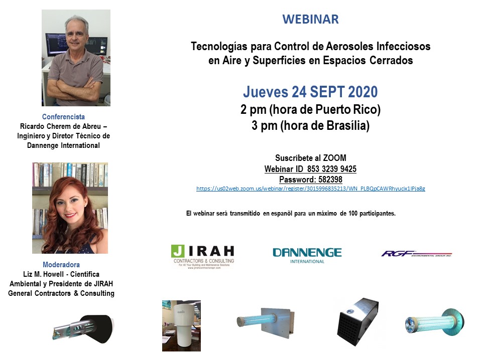 Nosso diretor técnico, engenheiro Ricardo Cherem de Abreu, participará do Webinar sobre “Tecnologias para Controle de Aerossóis em Espaços Fechados”, organizado por Liz Howell, presidente da Jirah General Contractors & Consulting, parceira de negócios da Dannenge International na América Latina.