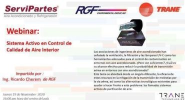 A convite da Trane Technologies, o engenheiro Ricardo Cherem de Abreu, diretor técnico da Dannenge International, participará do segundo treinamento técnico da Trane México, ministrando palestra sobre os sistemas de purificação do ar da RGF Environmental Group, com tecnologia ativa por photo hidro ionização (PHI), amigáveis ao meio ambiente, livres de ozônio, com melhorias para a Qualidade do Ar Interior – […]